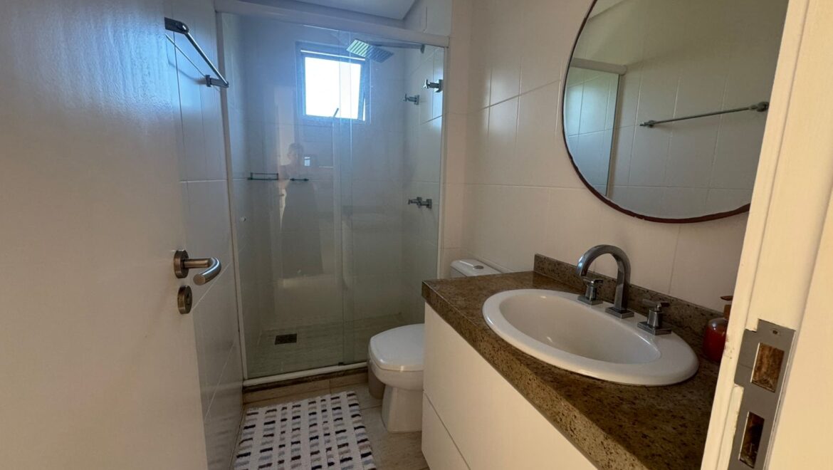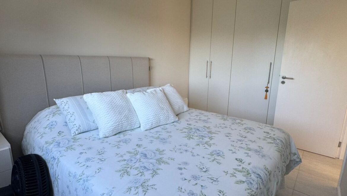 O imóvel possui 89,87 m² privativos e está mobiliado, sendo 2 suítes, 1 banheiro social, c ...