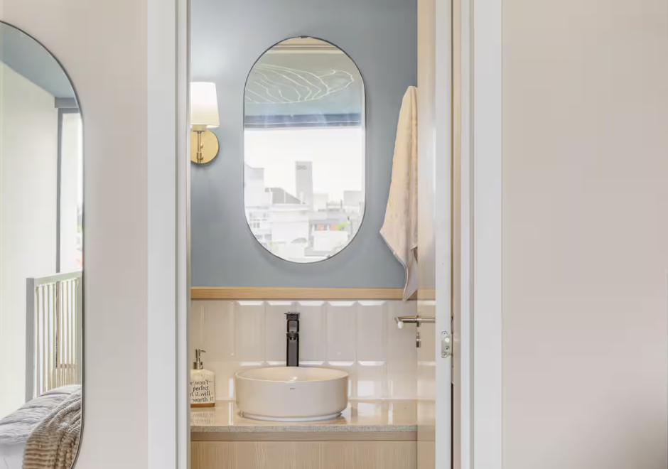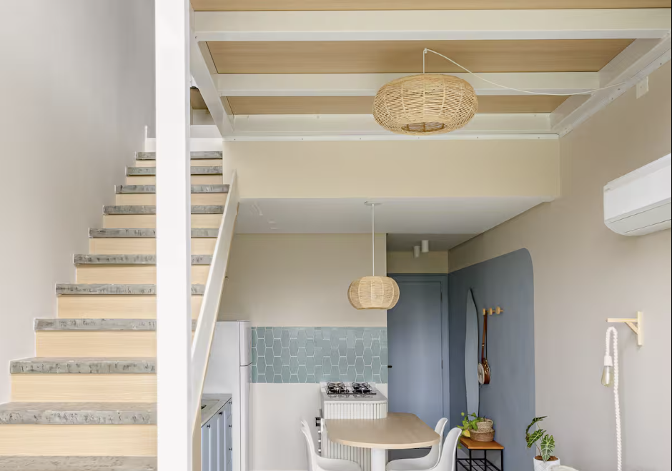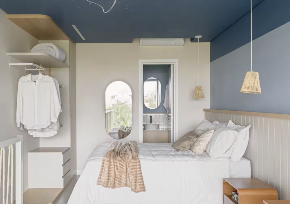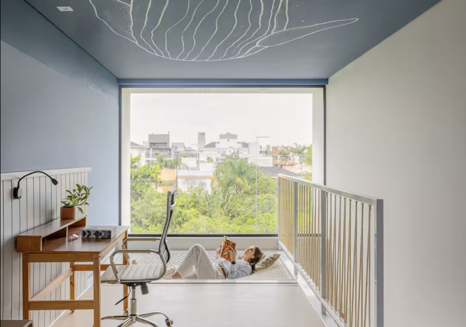 Pavimento Superior: Suíte espaçosa com abundância de luz natural (orientação oeste) e privacidade garantida — seu refúgio pessoal.